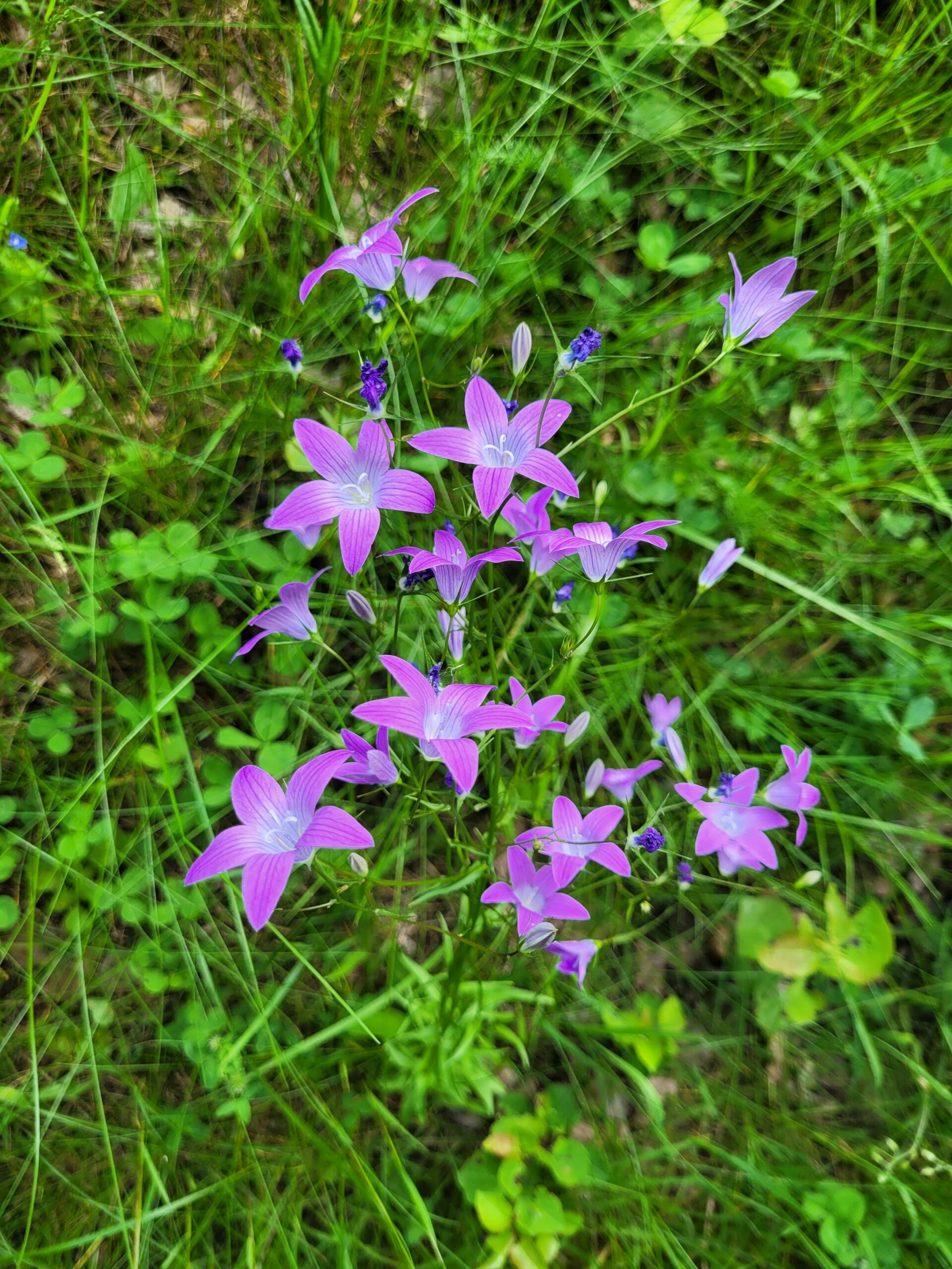 Die Wiesenglockenblume ist eine eher unscheinbare, aber leuchtend schöne Blume. Viele violette locker verteilte Blüten, zwischen 20-70cm hoch. Wächst am liebsten auf feuchten, nährstoffreichen Wiesen und ganz gerne auch im Gemüse- oder Blumenbeet.
